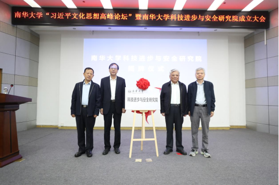 在热烈的掌声中,高山、侯惠勤、陈金龙、马雷共同为“南华大学科技进步与安全研究院”揭牌。