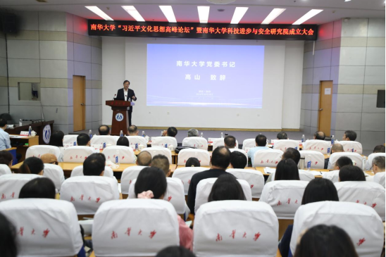 10月19日,南华大学“习近平文化思想高峰论坛”暨南华大学科技进步与安全研究院成立大会在红湘校区图书馆一楼新知学堂举行。校党委书记高山出席并致开幕辞。校党委委员刘文君主持开幕式暨揭牌仪式。