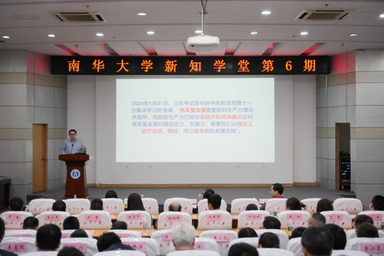 4月23日晚,南华大学新知学堂2024年第6期在红湘校区图书馆开讲。哈尔滨工业大学(深圳)材料科学与工程学院和经济管理学院双聘教授、区块链发展研究院院长、材料基因与大数据研究院副院长林熹应邀来校,以《高质量发展的基石:新质生产力》为题为在场师生作学术报告。校党委书记高山出席。校党委委员、纪委书记刘杏花主持。